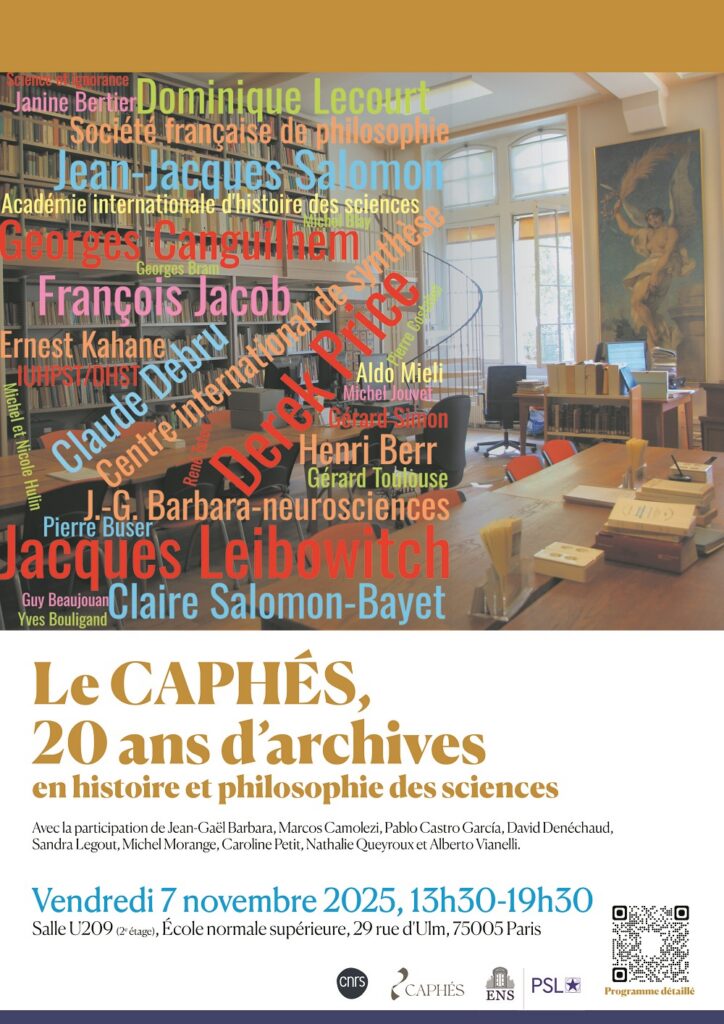 Journée « Le CAPHÉS : 20 ans d’archives en histoire et philosophie des sciences », 7 novembre 2025