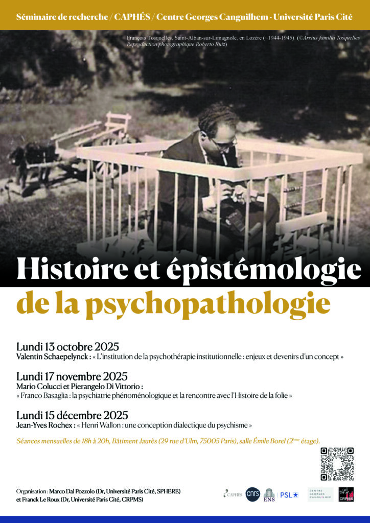 Séminaire « Histoire et épistémologie de la psychopathologie », 13 octobre 2025